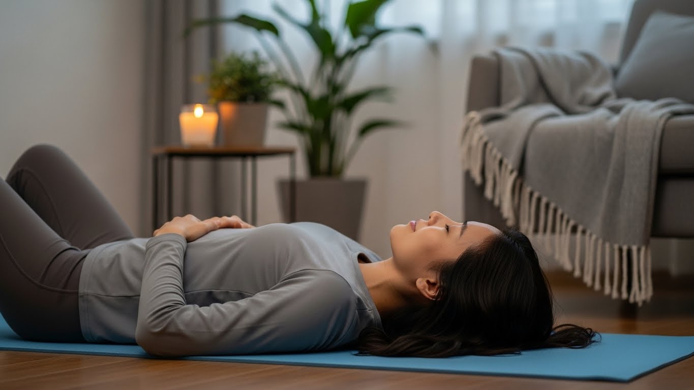 집에 오자마자 매트에 눕는 게 생각보다 중요해요. 옷 갈아입고 소파에 앉아버리면 다시 움직이기 정말 힘들거든요. 이 루틴은 숨을 고르고 몸을 깨우는 데 초점을 둬요.
